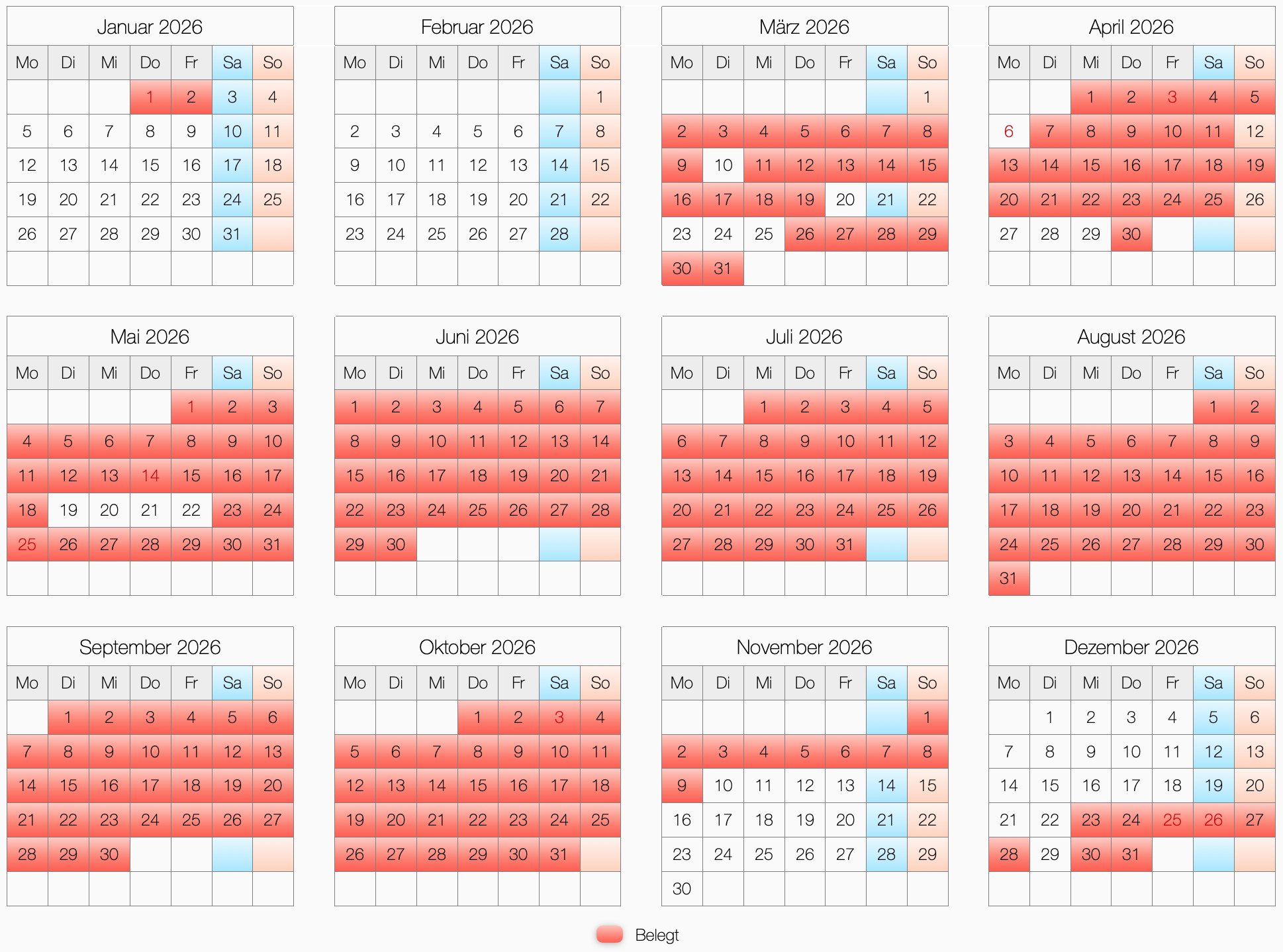 Belegungsplan 2026